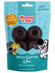 De Woezel & Pip Mini Donut met Lam is een feestelijke hondensnack in donutvorm, rijkelijk voorzien van heerlijk mals lamsvlees. Perfect als verantwoorde verwennerij of beloning voor kleine tot middelgrote honden – of gewoon als vrolijk genietmoment.