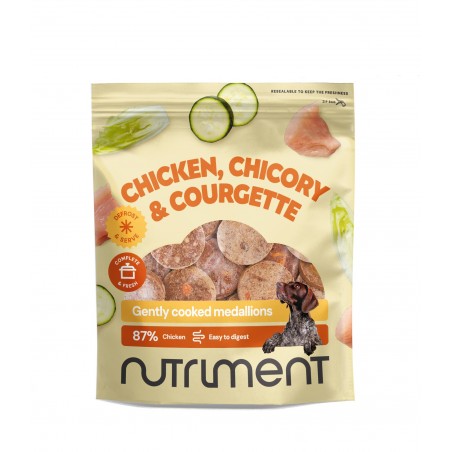 Volwassen honden zouden dagelijks 2-4% van hun ideale lichaamsgewicht aan voeding moeten consumeren. De optimale hoeveelheid is afhankelijk van leeftijd, ras, leefomstandigheden en activiteitsniveau. Laat de medaillons volledig ontdooien in de koelkast en consumeer ze binnen 1-2 dagen. Elke medaillon weegt ongeveer 40 gram.